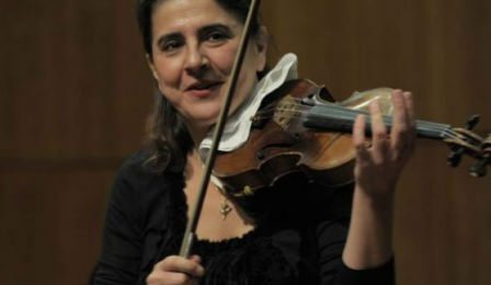 Salerno-Sonnenberg toca un violín Peter Guarneri llamado “Miss Beatrice Lutyens, ex Cte de Sasserno, Cremona 1721”.